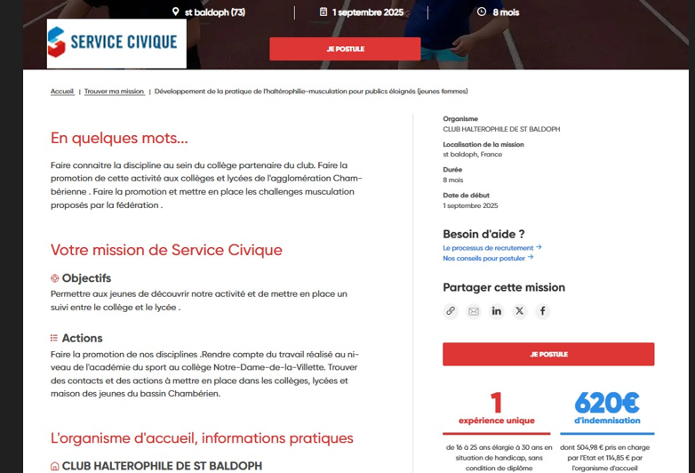 Le club d'haltérophilie recherche un service civique pour la rentrée prochaine.