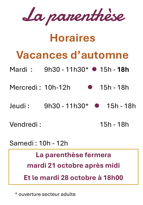 LA PARENTHÈSE : HORAIRES VACANCES D'A...