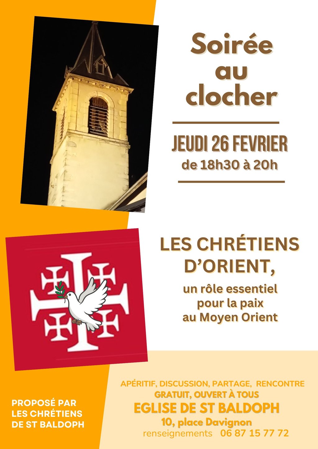 SOIRÉE AU CLOCHER " LES CHRÉTIENS D'ORIENT, UN RÔLE ESSENTIEL POUR LA PAIX AU MOYEN ORIENT"