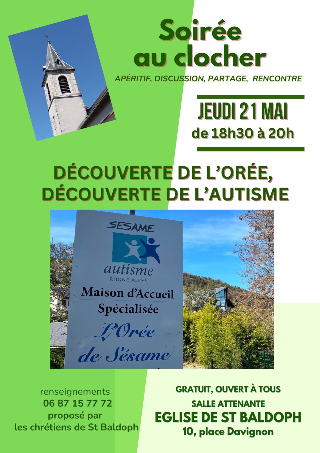 SOIRÉE AU CLOCHER : DÉCOUVERTE DE L’ORÉE DE SÉSAME À ST BALDOPH, DÉCOUVERTE DE L’AUTISME…